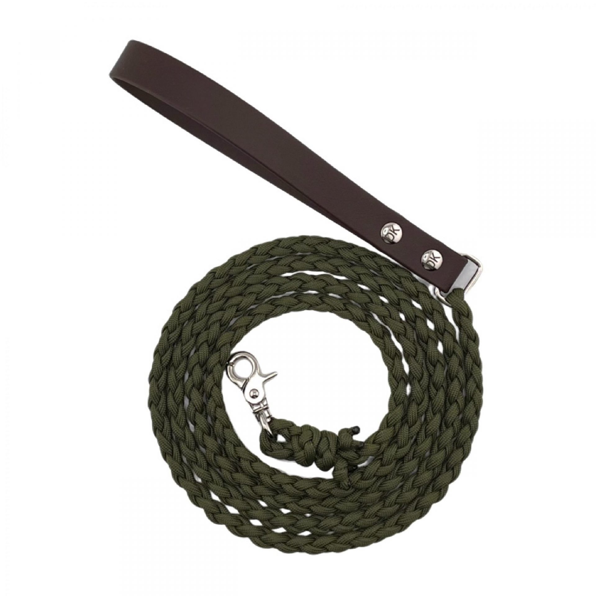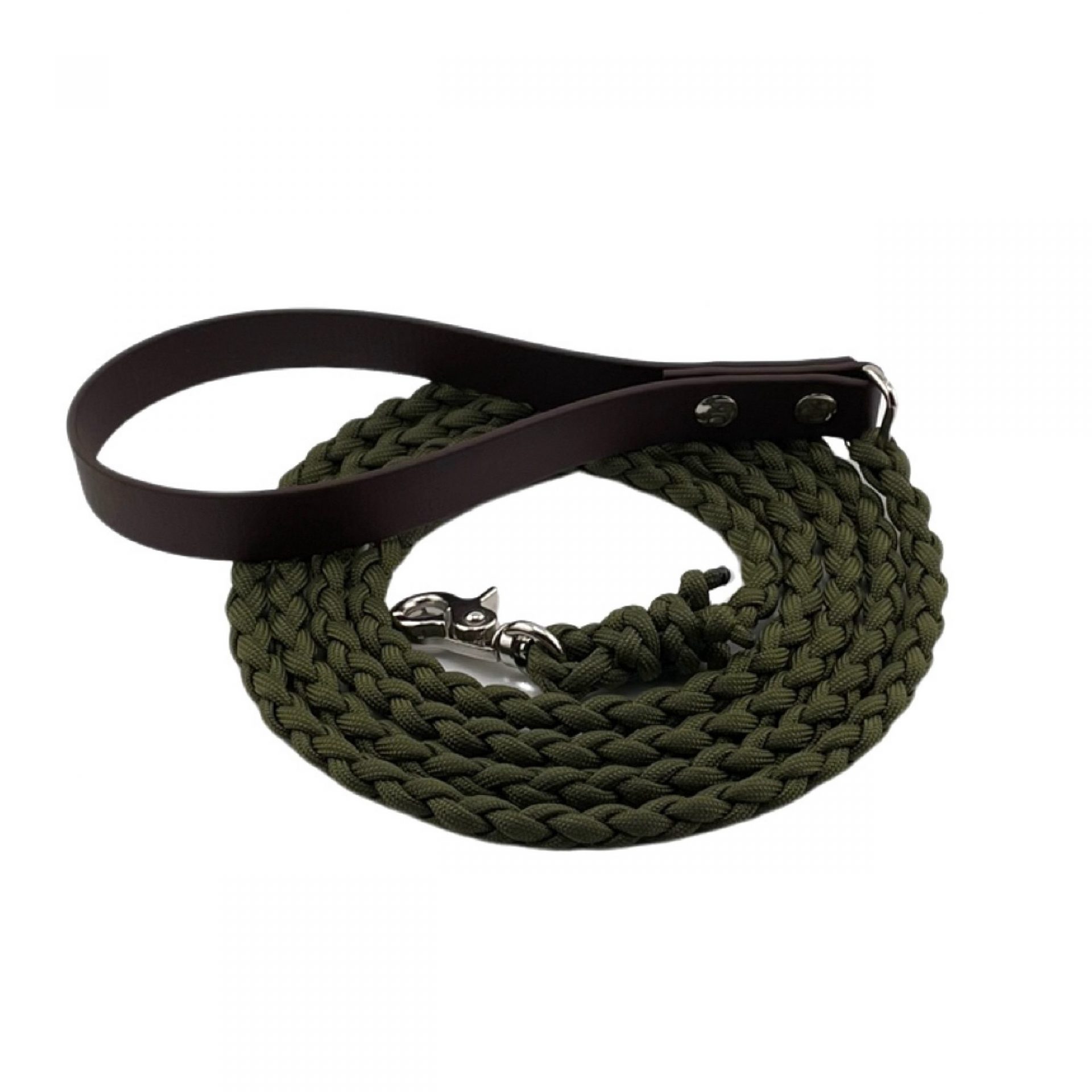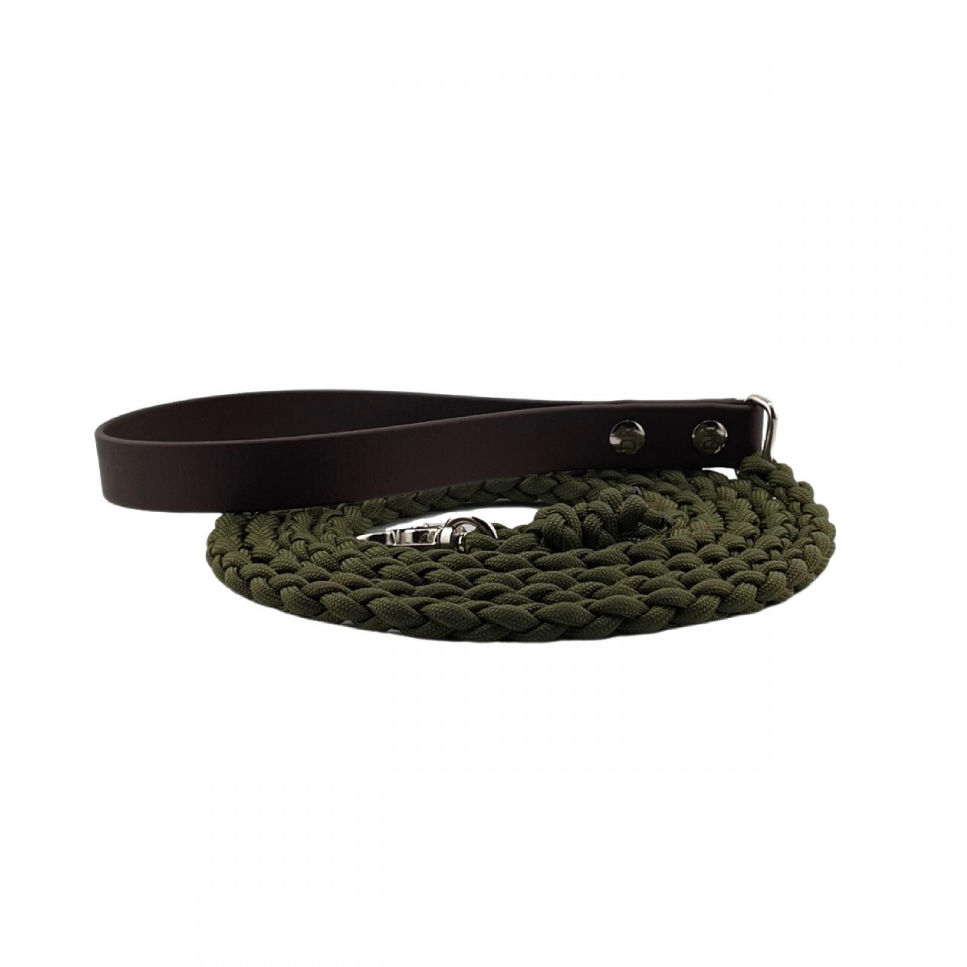 Unsere Paracordleine DK „Olive“ 2-Strang verbindet das strapazierfähige und robuste Design von Paracord mit der schlichten Eleganz von Biothane. Die Handschlaufe aus Biothane ermöglicht eine sichere und komfortable Führung deines Hundes. Biothane ist wasserfest und resistent gegenüber Schmutz und Feuchtigkeit. Das macht es besonders geeignet für den Einsatz im Freien und bei allen Wetterbedingungen. Die glatte Oberfläche von Biothane macht es einfach, diese zu reinigen. Man kann Schmutz oder Schlamm leicht abwischen. Biothane ist im Vergleich zu einigen anderen Materialien sehr leicht, was den Komfort für deinen Hund und dich verbessert. Die Leine ist nicht verstellbar und in der Gesamtlänge inkl. Schlaufe ca. 1,85 m lang (ohne Schlaufe ca. 1,65 m). Jede Leine von uns wird für dich in 100 % Handarbeit hergestellt.