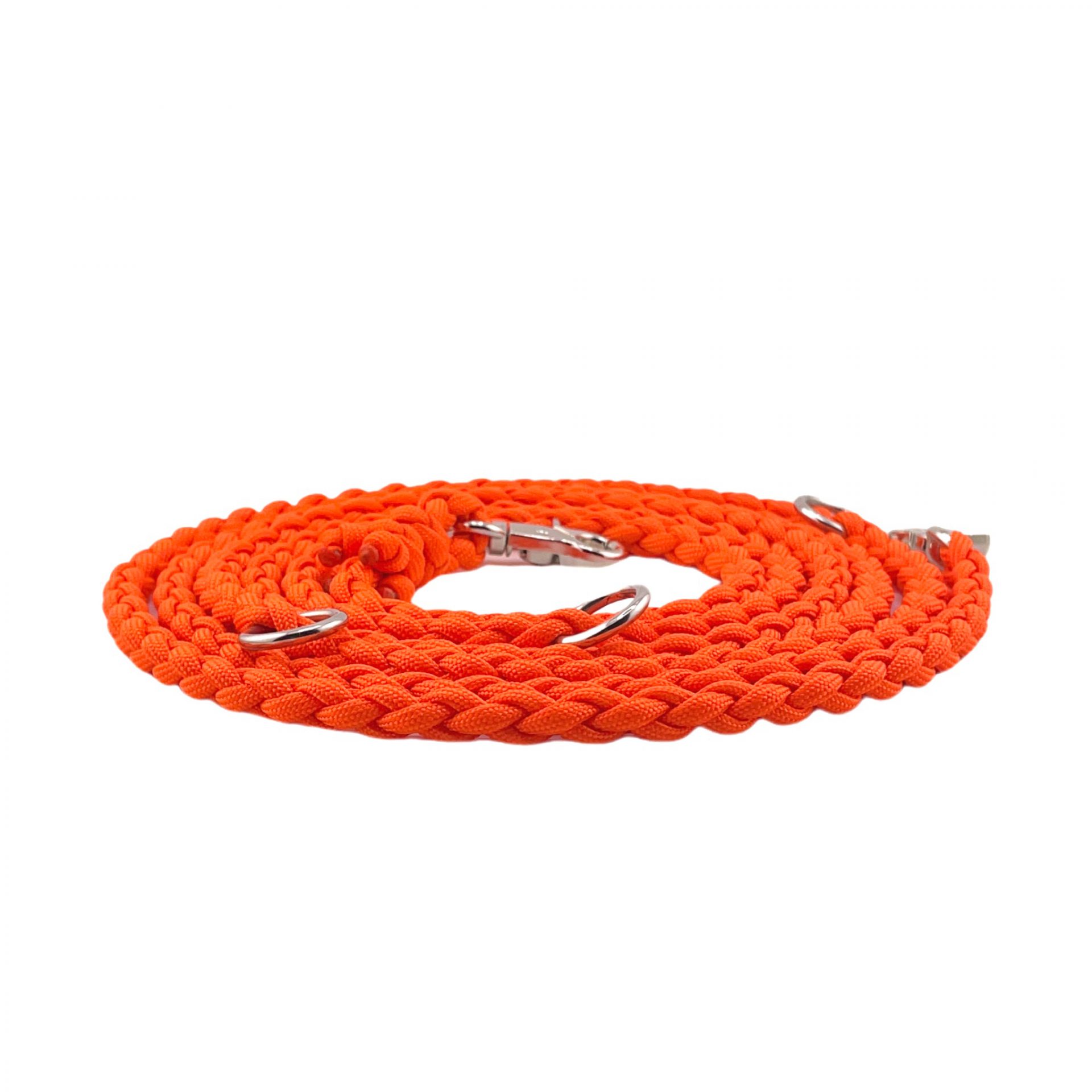 Unsere Paracordleine Essential „Orange“ 2-Strang im klassisch zeitlosem Design ist das perfekte Accessoire für die täglichen Spaziergänge mit deinem Liebling! Die Farbe ist so ausgewählt, dass diese zu den meisten Halsbändern oder Geschirren passt, die du ggf. schon zu Hause hast Die Leine ist 3-Fach verstellbar (1,5m / 2m / 2,30 m) und in der Gesamtlänge ca. 2,60 Meter lang. Jede Leine von uns wird für dich in 100 % Handarbeit hergestellt.