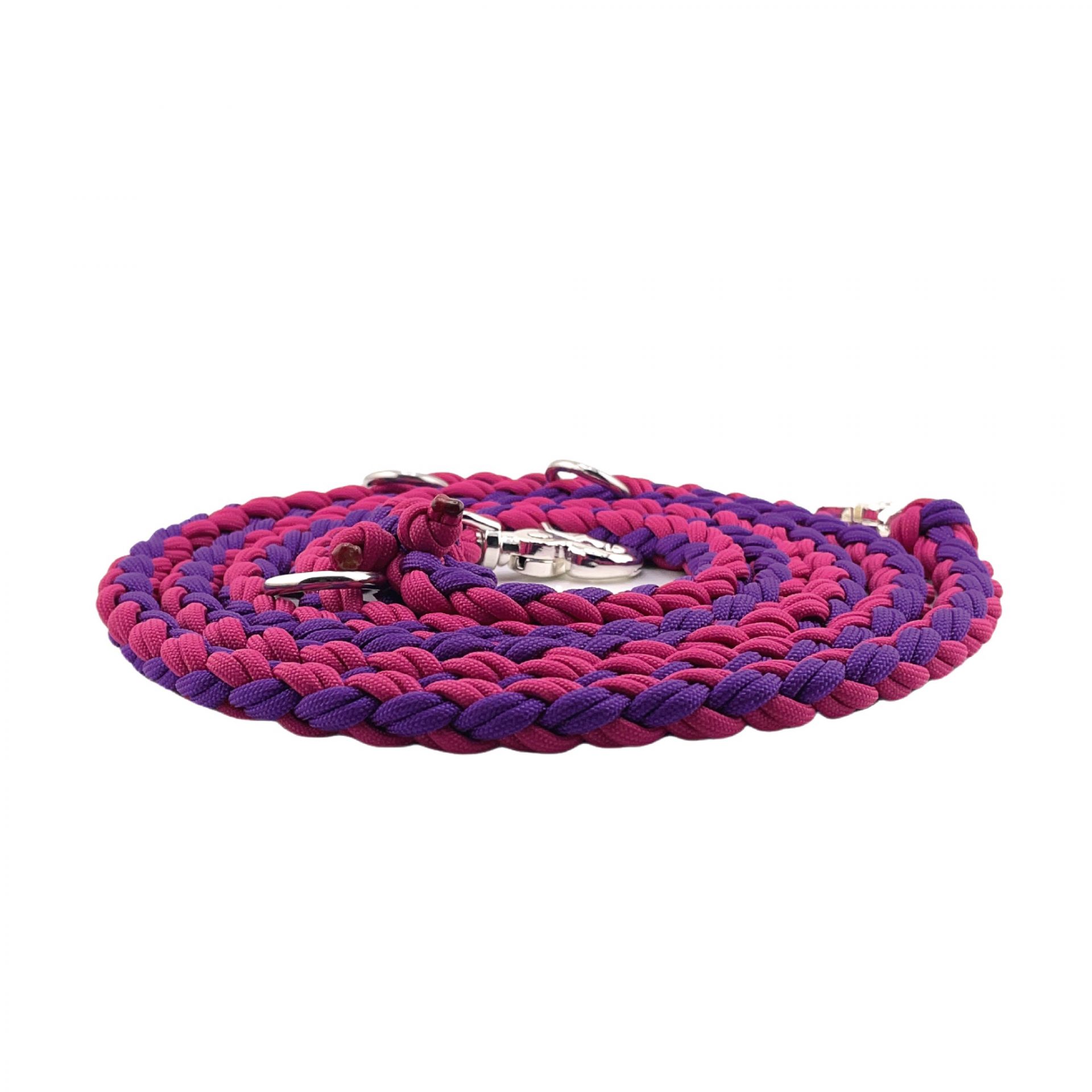 Unsere Paracordleine Essential „Violett“ 4-Strang im klassisch zeitlosem Design ist das perfekte Accessoire für die täglichen Spaziergänge mit deinem Liebling! Die Farbe ist so ausgewählt, dass diese zu den meisten Halsbändern oder Geschirren passt, die du ggf. schon zu Hause hast ​​Die Leine ist 3-Fach verstellbar (1,4 m / 1,8 / 2,20 m) und in der Gesamtlänge ca. 2,50 Meter lang. Jede Leine von uns wird für dich in 100 % Handarbeit hergestellt.